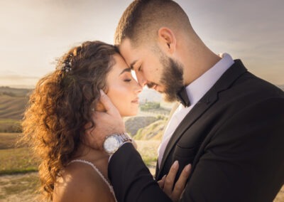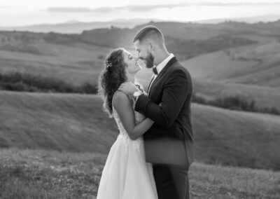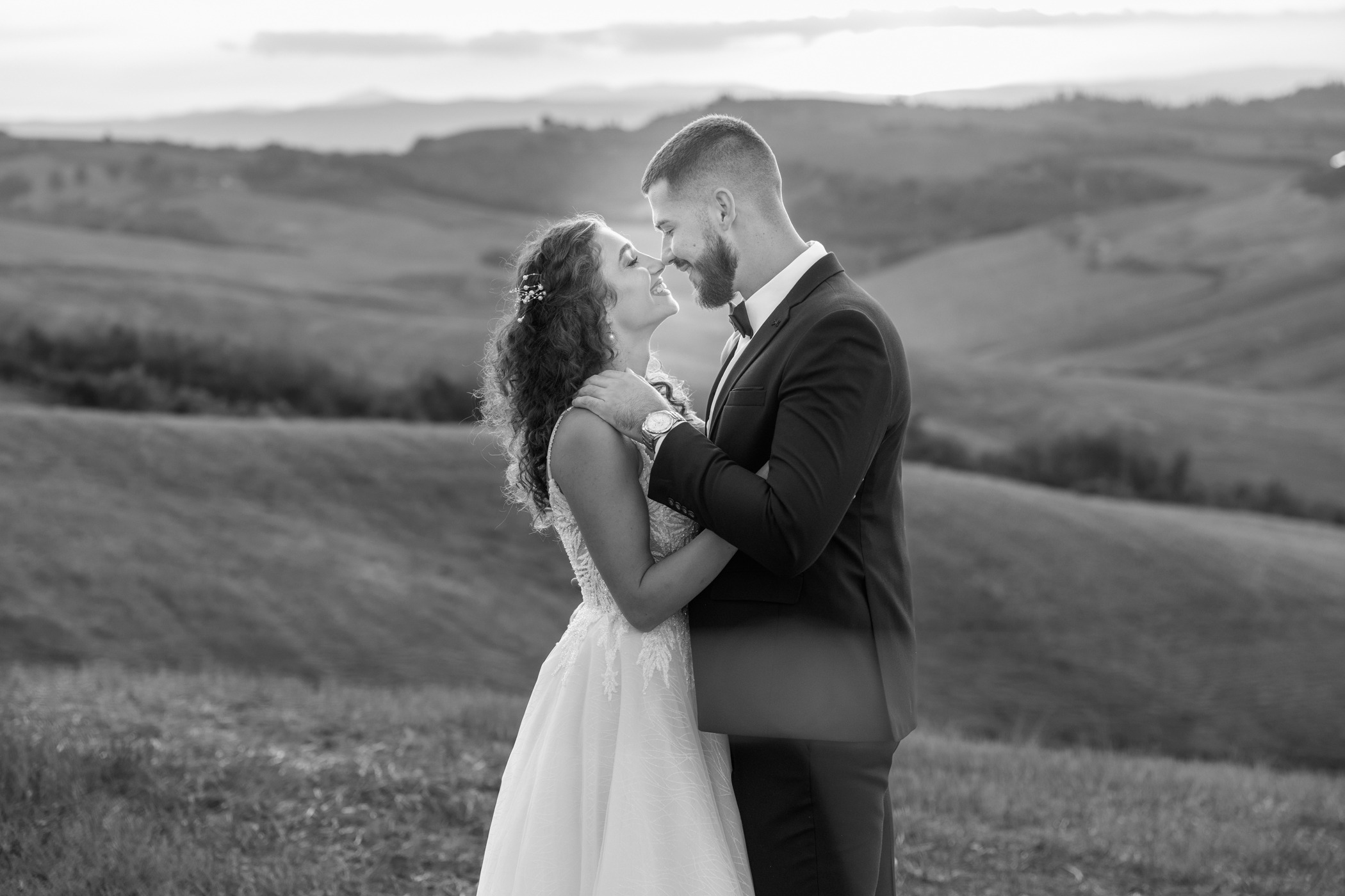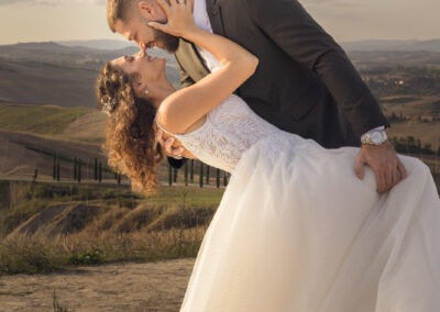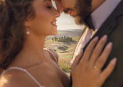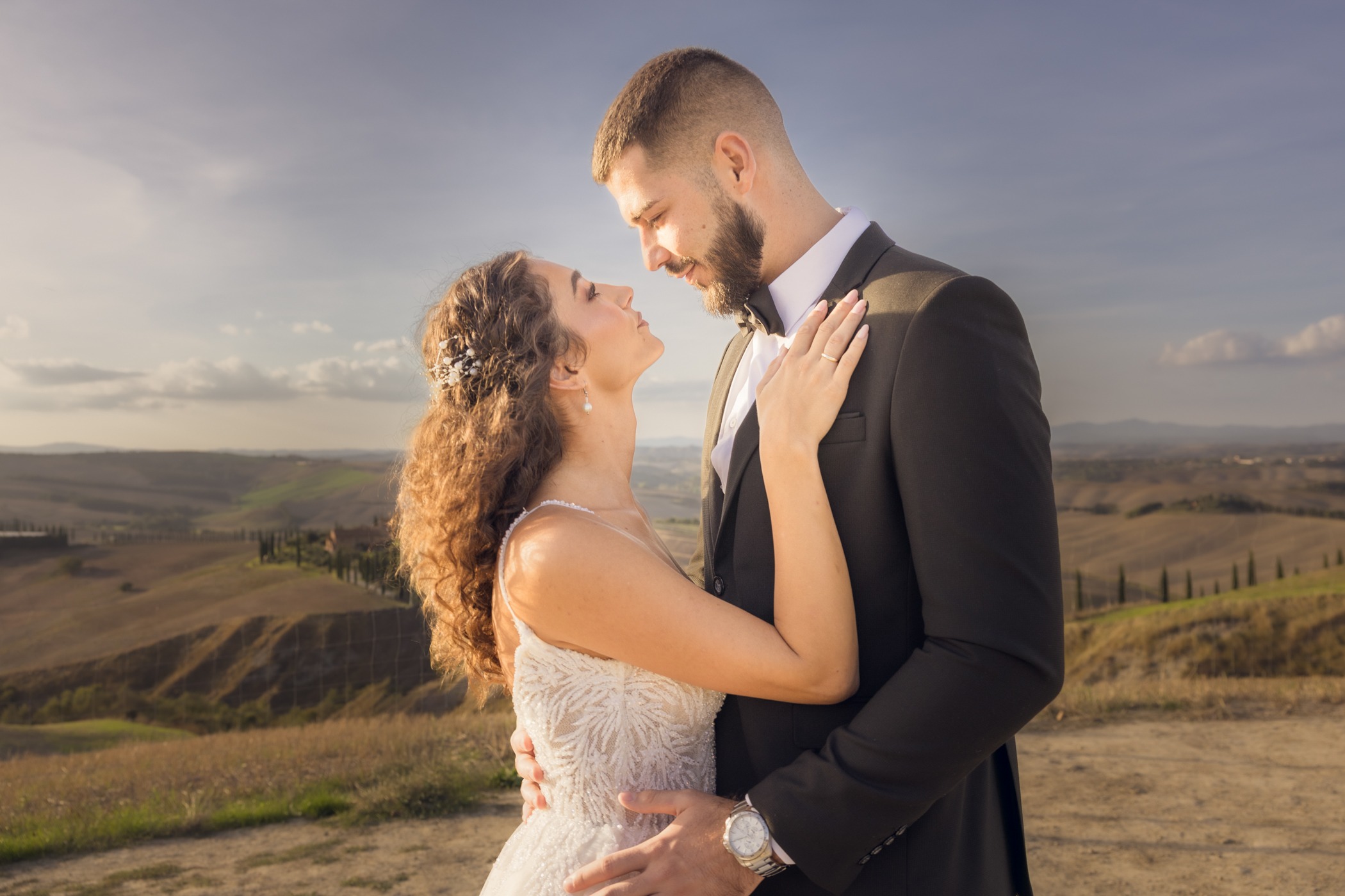 Nakon venčanja u Srbiji, poželeli su da sebi poklone još jedno posebno iskustvo – putovanje u Italiju i fotografisanje u predivnim predelima Toskane. Nekoliko dana daleko od svakodnevice, samo njih dvoje, blagi brežuljci, vinogradi, kameni putevi i svetlost koja Toskanu čini jednom od najlepših regija na svetu.
