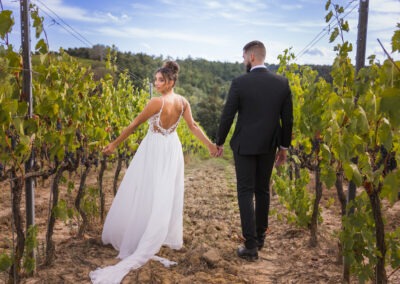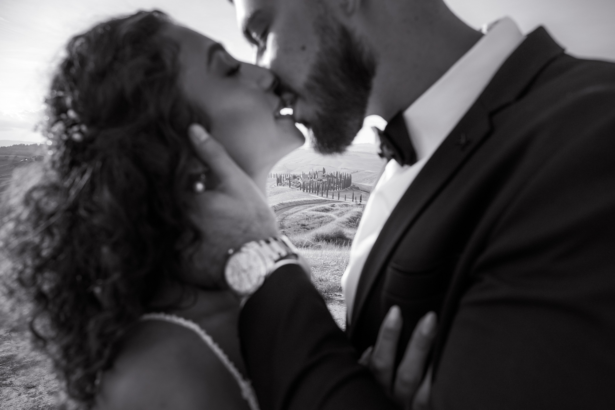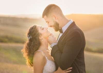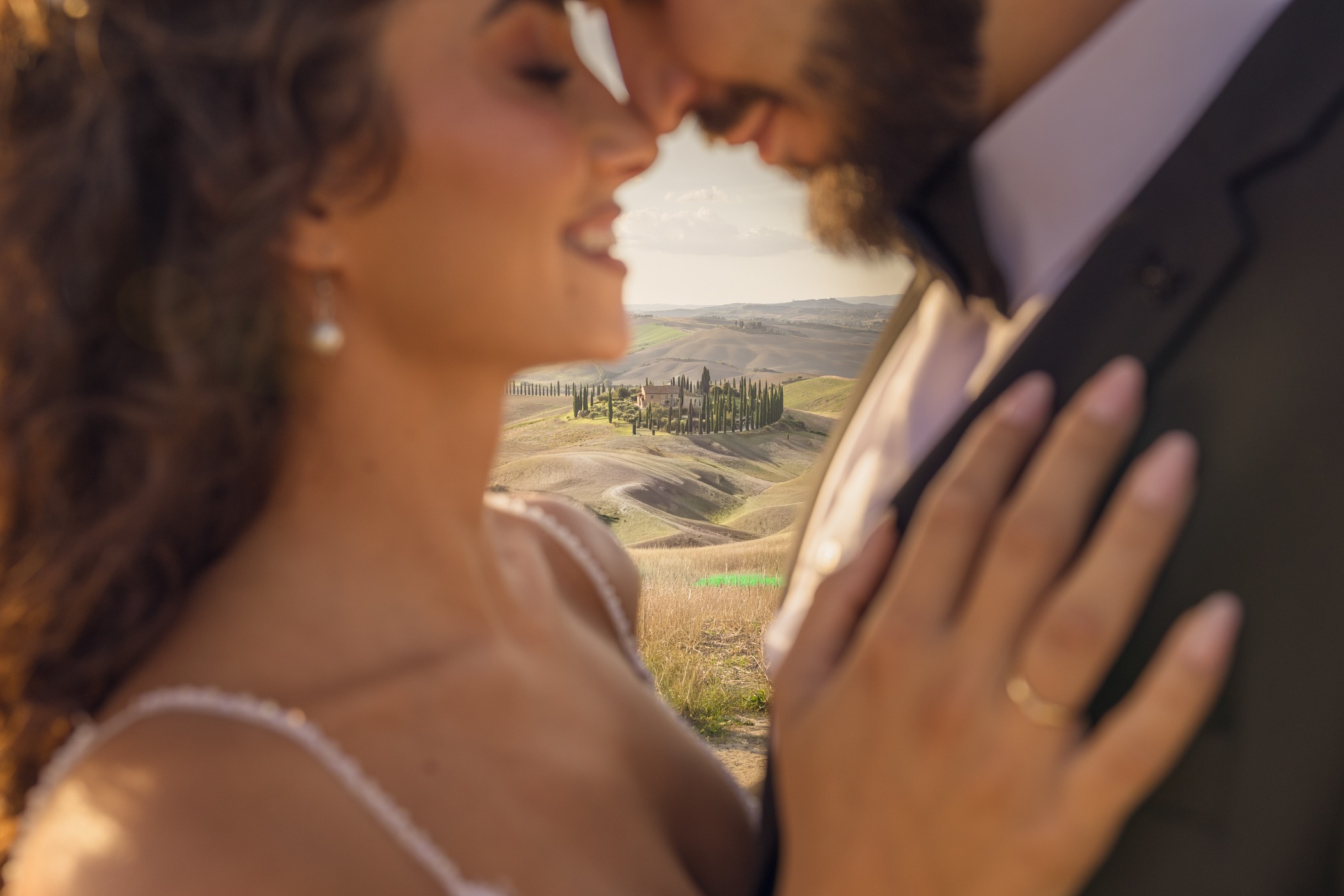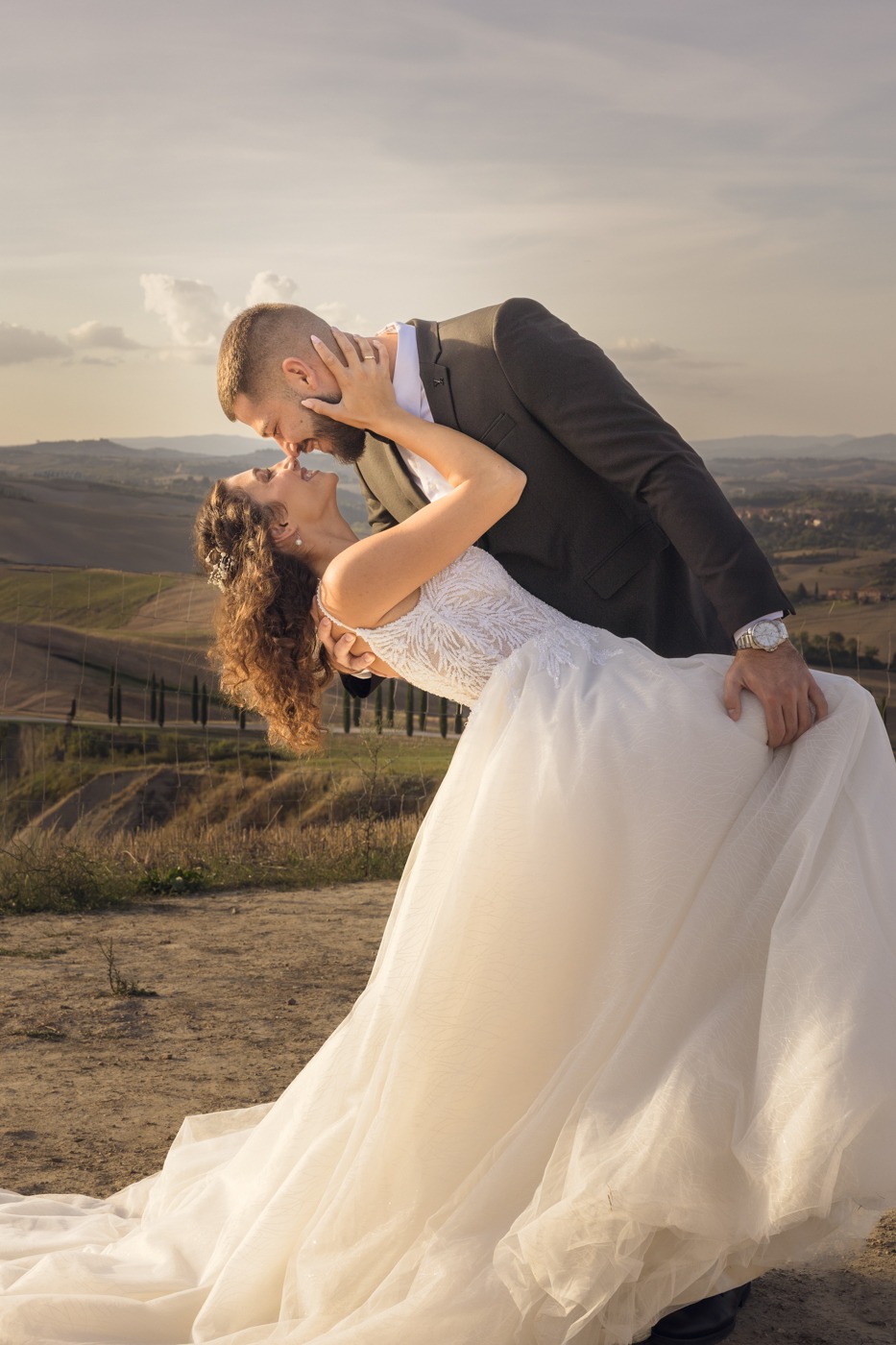 Nakon venčanja u Srbiji, poželeli su da sebi poklone još jedno posebno iskustvo – putovanje u Italiju i fotografisanje u predivnim predelima Toskane. Nekoliko dana daleko od svakodnevice, samo njih dvoje, blagi brežuljci, vinogradi, kameni putevi i svetlost koja Toskanu čini jednom od najlepših regija na svetu.
